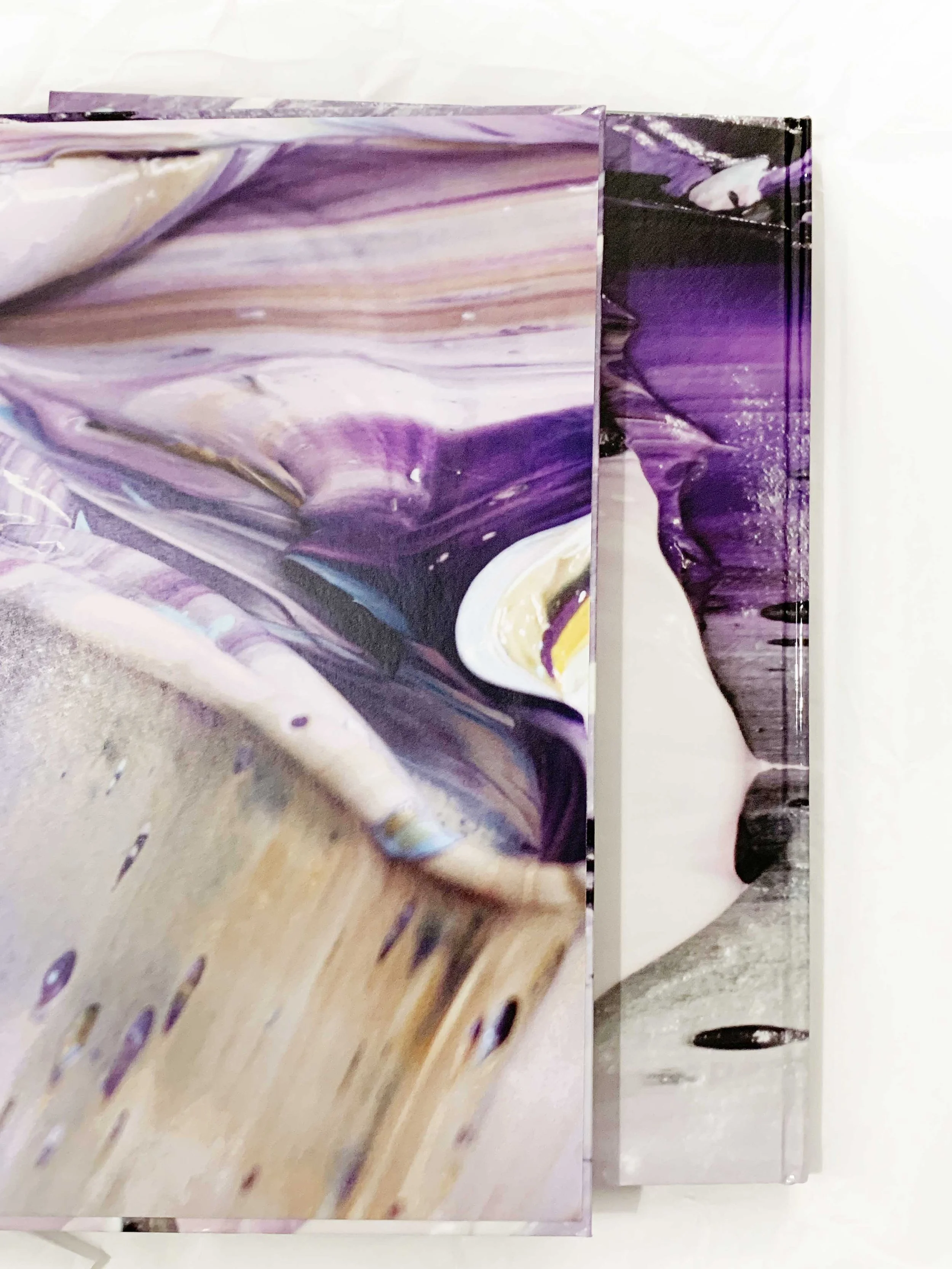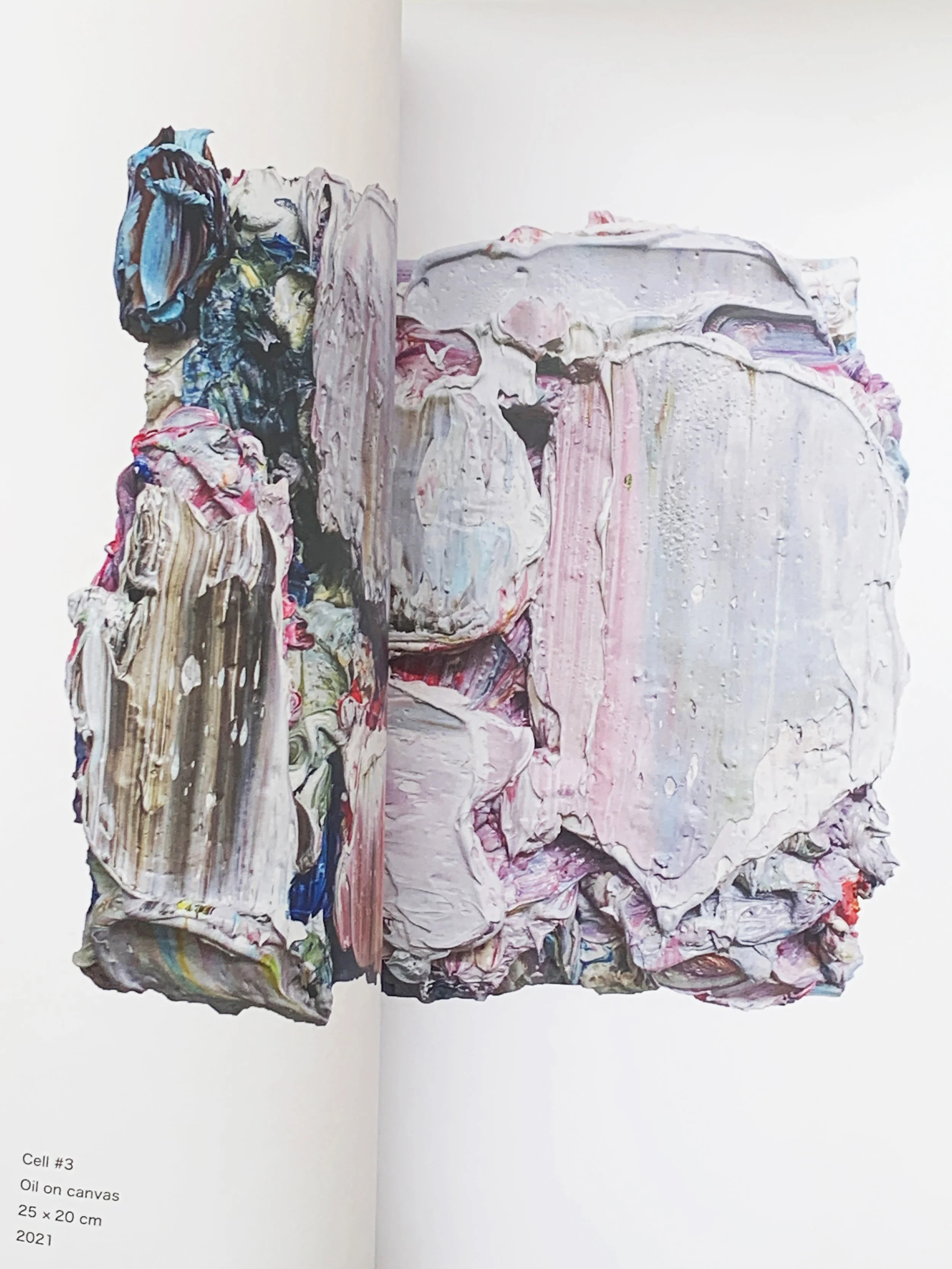 This catalogue explores the vivid work of painter Katsuhiko Matsubara. A glossy cover draws the eye, while off-white Munken pages present the paintings with clarity and warmth. Close-up details reveal the texture and depth of the oil paint, inviting the reader into an immersive, richly colored encounter with the artist’s practice.